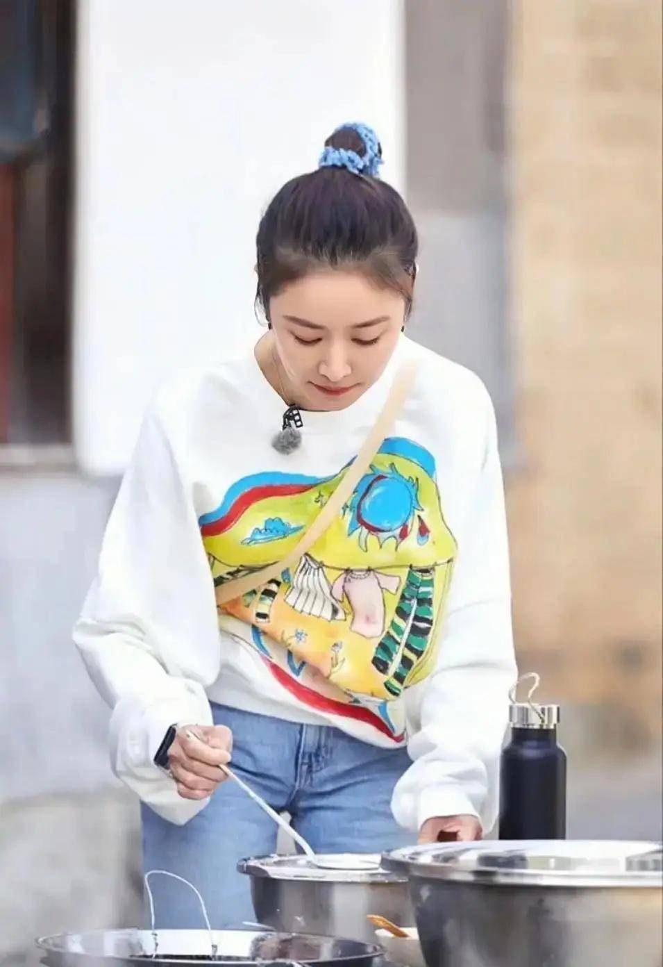 她选择了一件版型适中的连帽卫衣,不过分宽松,也不紧身。这种款式最不挑身材,微胖女孩穿能藏肉,瘦女孩穿更有松弛感。卫衣自带的休闲属性,是营造减龄感的核心。颜色上选择基础色或低饱和度彩色,更容易穿出高级感。